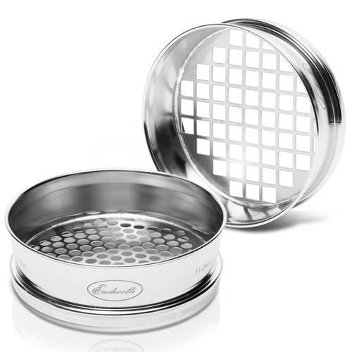 Endecotts manufacture a wide range of perforated plate sieves for the many industries that require them. These are available in diameter sizes of 200*, 300*, 400 and 450 mm.Aperture sizes range from 125 mm to 4 mm in square hole and 125 mm to 1 mm in round hole sieves.Perforated plate sieves can be supplied in frame materials of stainless steel or brass (*200 and 300mm) and are all manufactured to the highest engineering standards to ensure quality and accuracy. Woven wire sieves and perforated plate sieves are available to every national and international standard. Quick links: International Test Sieve Series (ISO) American Standard Test Sieve Series (ASTM)